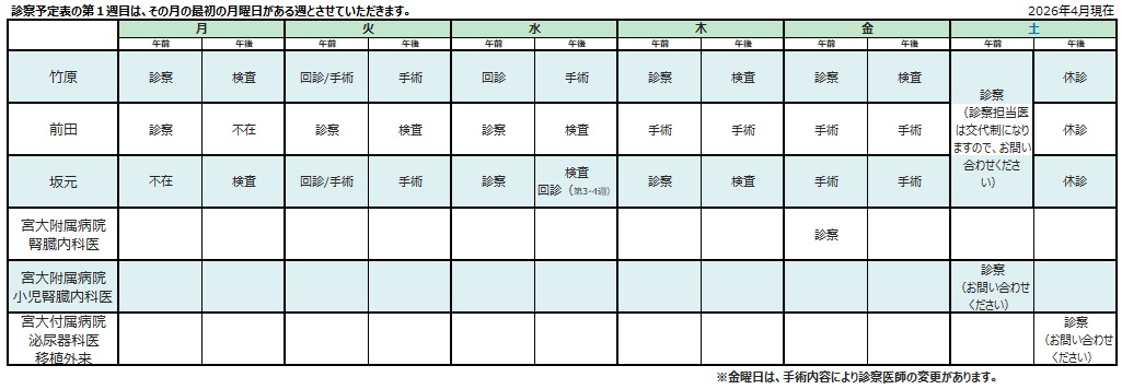 - 健康診断の結果(泌尿器・腎疾患に限る)に関するご相談等、健康管理に関するご相談に応じます。必要に応じ、専門の医師・医療機関をご紹介します。