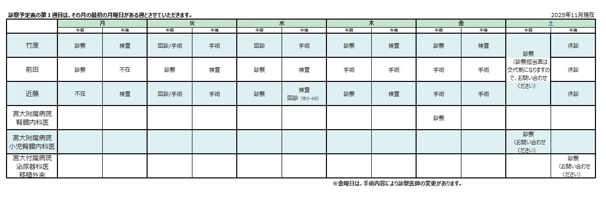 • 健康診断の結果(泌尿器・腎疾患に限る)に関するご相談等、健康管理に関するご相談に応じます。必要に応じ、専門の医師・医療機関をご紹介します。